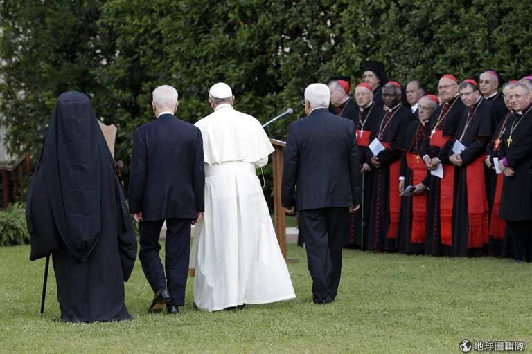 以色列和巴勒斯坦的領導人一起出席了梵諦岡主持的和平祈禱儀式,這場聚會的源頭,是來自教宗5月出訪聖地時,他出人意料地送出邀請給領袖們,才有了這場別開生面的盛會。聚會地點就在梵蒂岡的私人花園中。