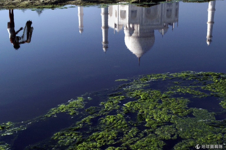 倒映在亞穆納河上的泰姬瑪哈陵。