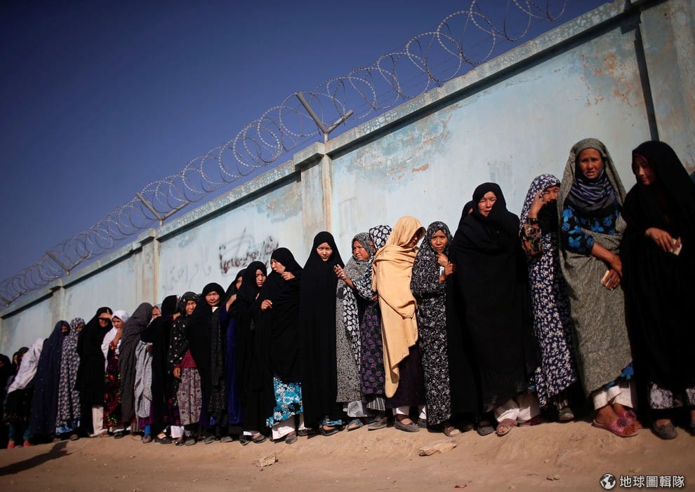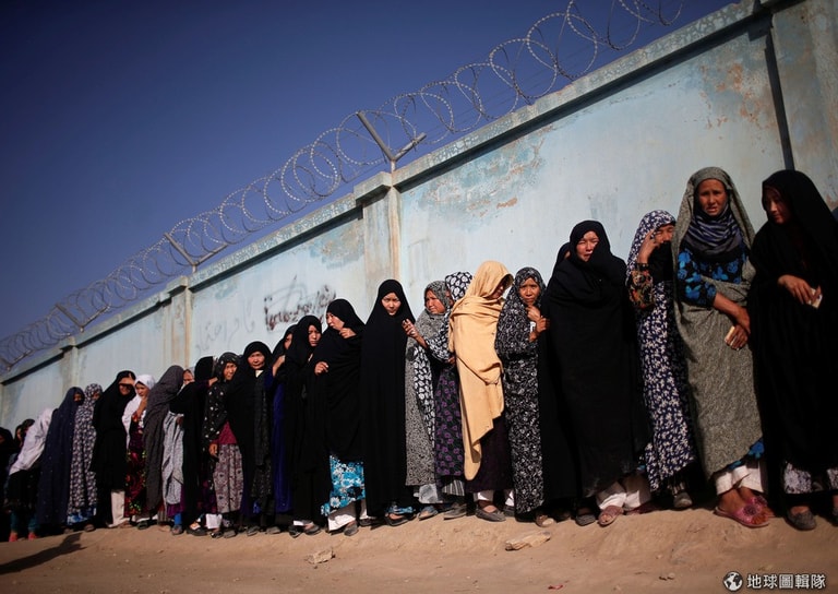阿富汗女性站在投票所外,準備投下總統大選的選票。
