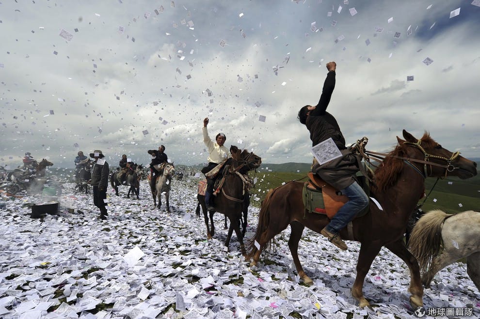 四川省的阿壩藏族羌族自治州可見藏人邊騎馬、邊向天空灑出祈福的紙,當地在18號這天舉行年度祈福慶典,藏人們會焚燒樹枝製造煙霧,同時把祈福的紙灑出,代表祈求好運還有豐收。