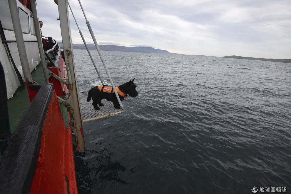 狗狗海克特正盯著海面,身為船上吉祥物的牠正等著潛水員從著名的斯卡帕灣(Scapa Flow)回來。蘇格蘭當地的斯卡帕灣是著名的潛水天堂,過去這裡在第一次世界大戰時扮演重要的英軍基地。