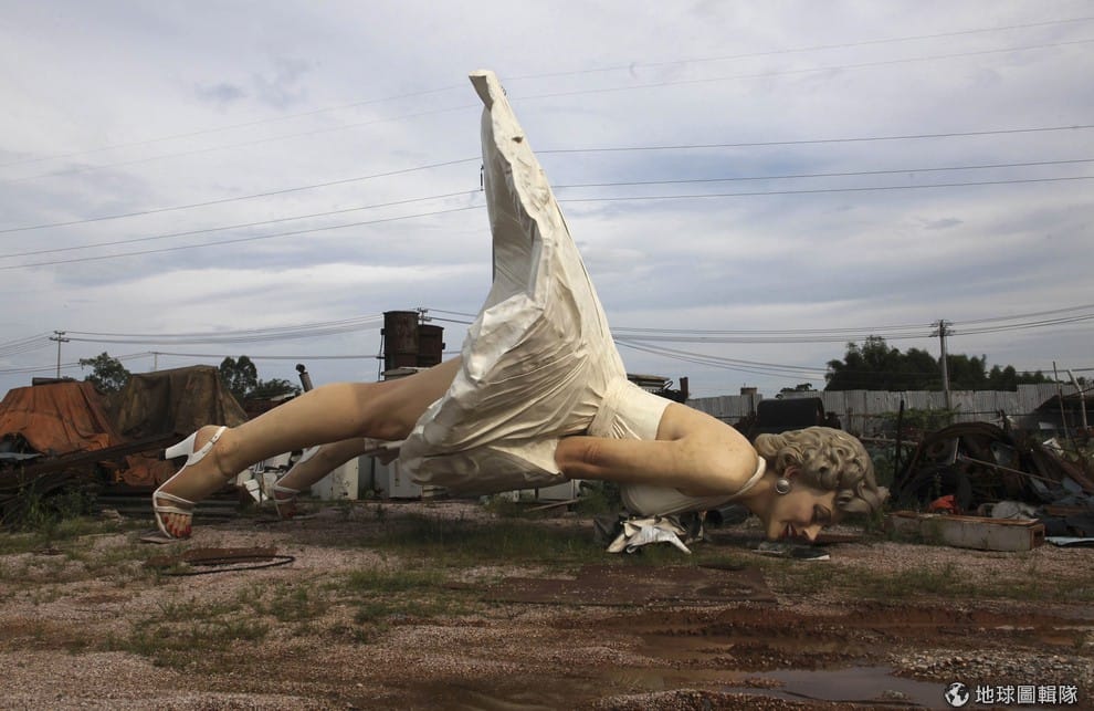 廣西壯族自治區當地的垃圾場中,可見一尊巨型瑪麗蓮夢露的雕像往前倒下,這座高達8公尺、重達8噸、並以鋼材製造成的雕像完成在2年前,它集合許多藝術家心血,靈感來源就是電影《七年之癢》中的名場面。近期當地媒體報導,這尊雕像僅在商業區展出了6個月就被運到垃圾場,沒有人知道確切的原因。