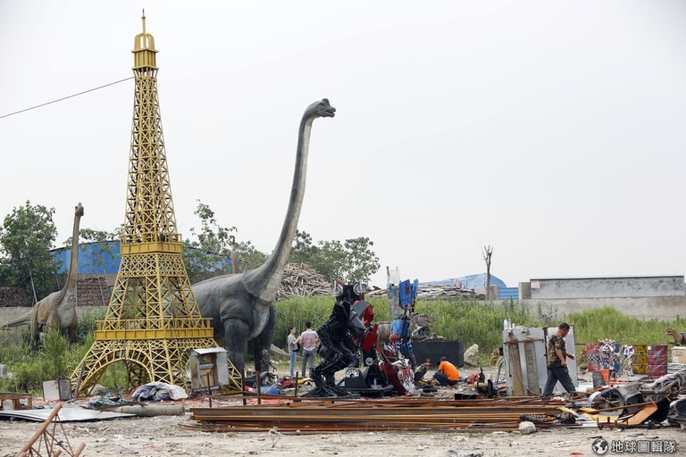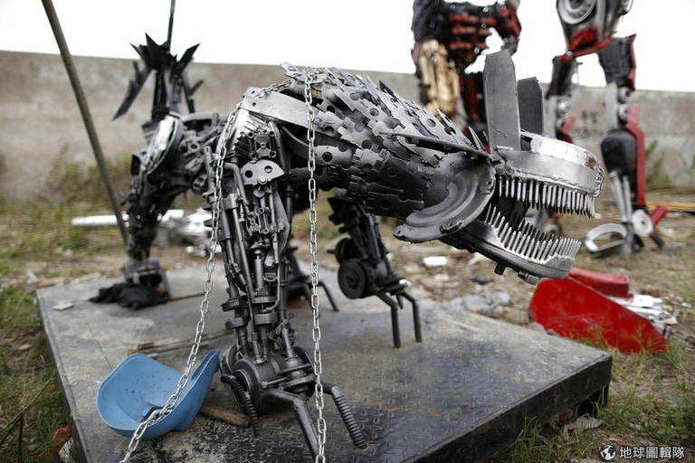 用廢鐵製作的變形金剛看來有些陽春,但李磊說他還是投入了不少資金,大概有2-3萬元人民幣