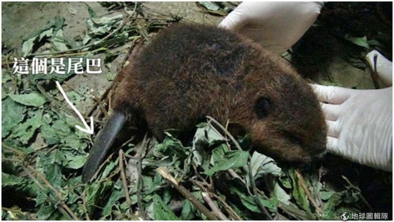 為了幫小河狸進行基本的形質測量,保育員苦苦等候媽媽下水游泳的時間,終於有機會一睹小河狸的廬山真面目,大家第一個反應都是寶寶的頭好大。保育員也觀察到小河狸已經學會啃樹枝,口腔上方左右各有1顆臼齒,下方左右各長2顆臼齒,還會在保育員準備的小水盆泡水,生活自理能力進步很快。