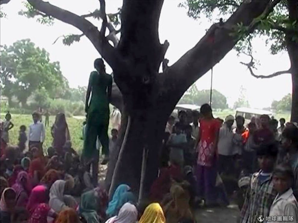 繼續閱讀5月27日時,印度警方接獲報案,有2名分別為14、15歲的少女因為家裡沒廁所,只得到戶外方便,但去上廁所的兩名少女就此失蹤,沒過多久,便傳來少女被吊死在樹上的消息。照片中可見村民圍聚在樹旁不讓員警進入,因為村民決定在兇手落網前,都不會將女孩地屍體放下;事後解剖報告顯示,女孩在生前遭到強暴。這起事件繼續延燒,印度警方將涉案的2名員警、2名村民逮捕,也持續追捕著另外3名嫌犯。