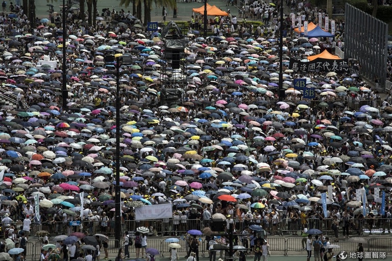 香港街頭站滿了參加示威的人,據遊行主辦單位的說法,今年的七一大遊行有多達51萬人參加。
