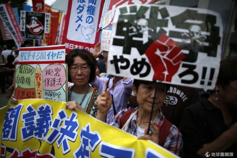 自從日本傳出將修改集體自衛權的消息,當地出現廣大的抗議聲浪,更有人以自焚的方式表達對政策的不滿。在這樣的緊繃氣氛中,日本內閣仍於7月1日決定修改憲法解釋以通過「集體自衛權」,也就是說,未來就算日本沒有受到攻擊,他們也可以協助受到攻擊的友邦來行使武力。