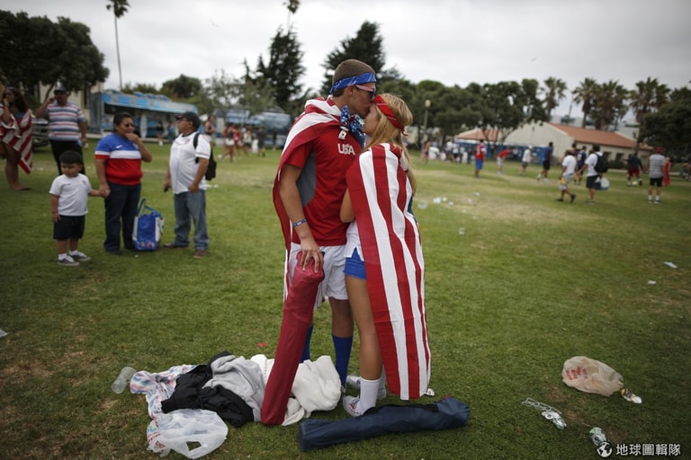 以籃球和棒球為最受歡迎球賽的美國,近日因為世足賽的熱潮,在當地引起罕見的足球狂熱。照片中的粉絲正在看美國對上比利時的賽事。