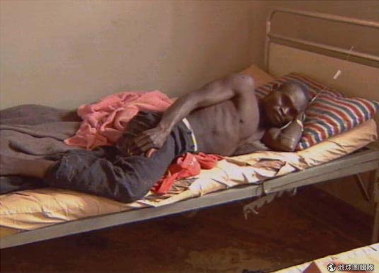 感染伊波拉病毒的患者虛弱地躺在床上