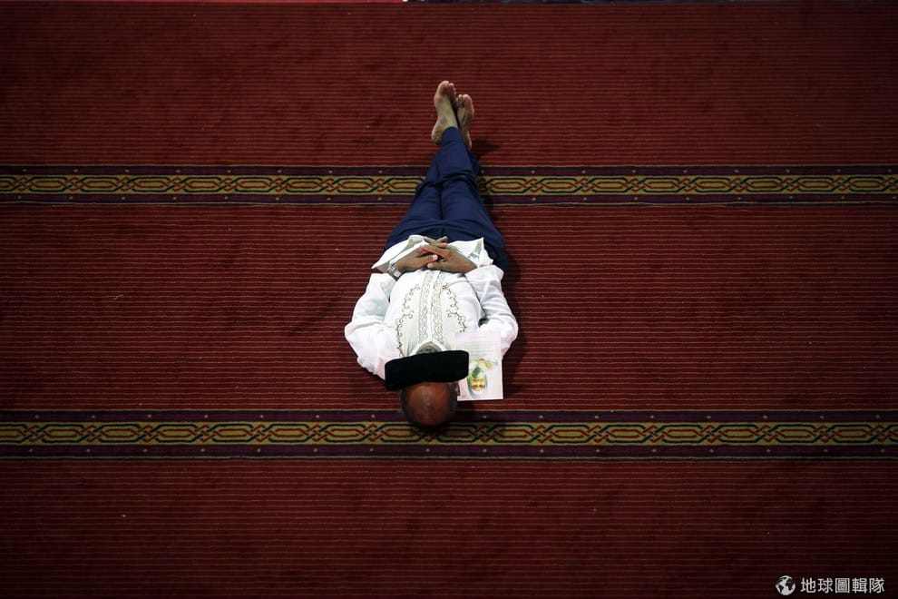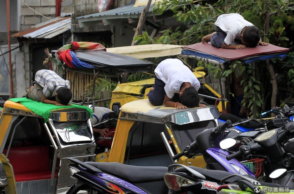 馬尼拉市區內,穆斯林們正在自己的計程車頂上虔誠膜拜,現在正是伊斯蘭教重要齋戒月期,信眾白天將會禁食直到傍晚。