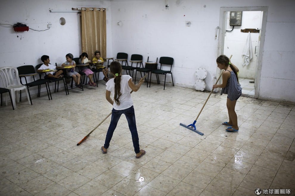 小女生們正在打掃防空洞,他們和其他人因為空襲攻擊的關係,躲到市區中的防空設施內。目前以巴雙方的衝突激烈化,8號的空襲中已知至少有16名加薩走廊的居民身亡。