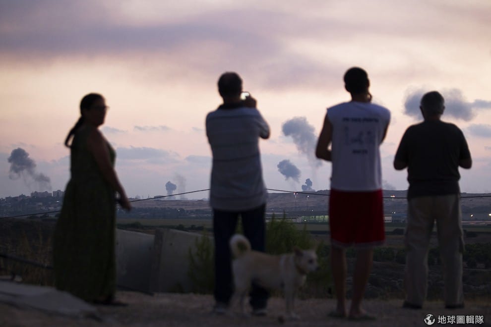 以色列人站在邊界處,他們抽著菸看著遠方加薩走廊地區不斷冒出灰煙。