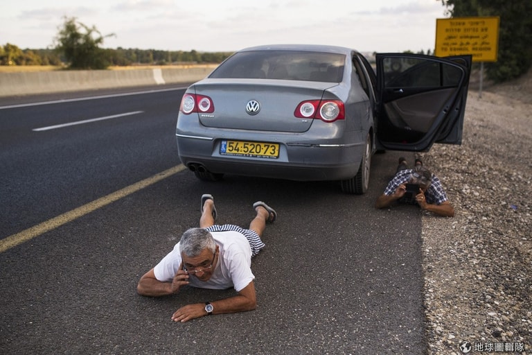 以色列民眾聽到空襲警報響起趕緊趴在地上,以色列在15號時同意埃及提出的停火協議,但主導加薩走廊的哈瑪斯政府則不同意,雙方交火已經超過一周。
