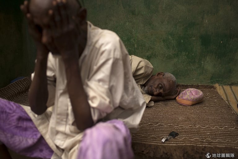 照片中的人們準備一會兒即將開始的祈禱儀式,他們因為當地宗教衝突的影響,只能受限待在清真寺中。