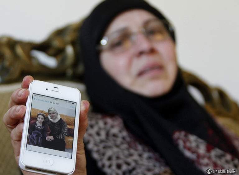 照片中的女性是AH 5017班機上的乘客蘭達(Randa Daher )的親戚,他正在給記者看蘭達和女兒的合照。