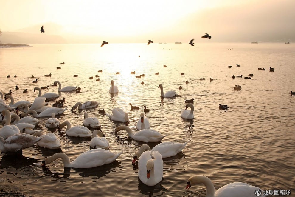 gettyimages夕陽西下的瞬間,白天鵝們都被染上美麗的金色。圖片來源:Koichi Kamoshida/Getty Images