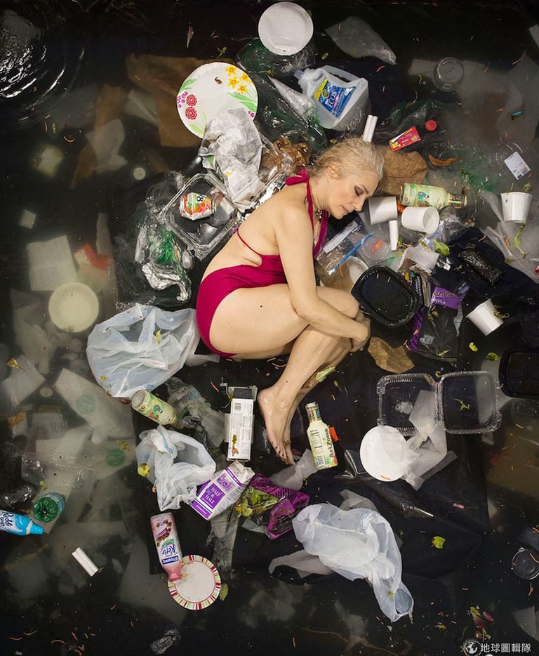 每張照片中,可以見到人們躺在被污染的自然場景中和人為的垃圾合照,強烈的對比展現出攝影師想喚醒美國大眾對浪費議題的重視。