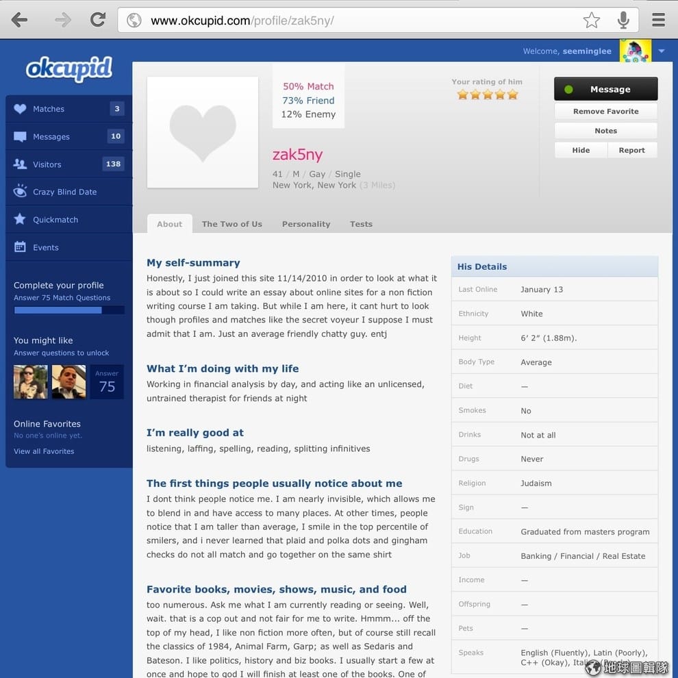 OKCupid是一個知名的約會網站。Photo credit: See-ming Lee
