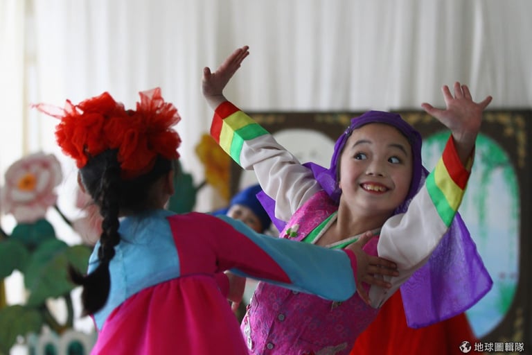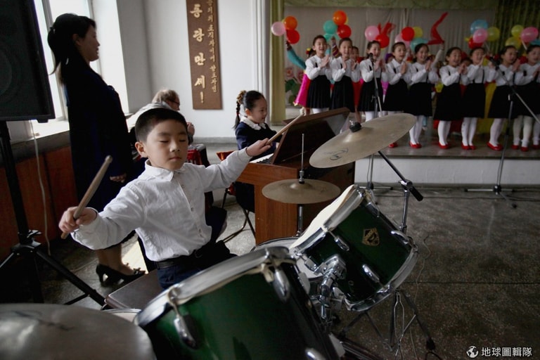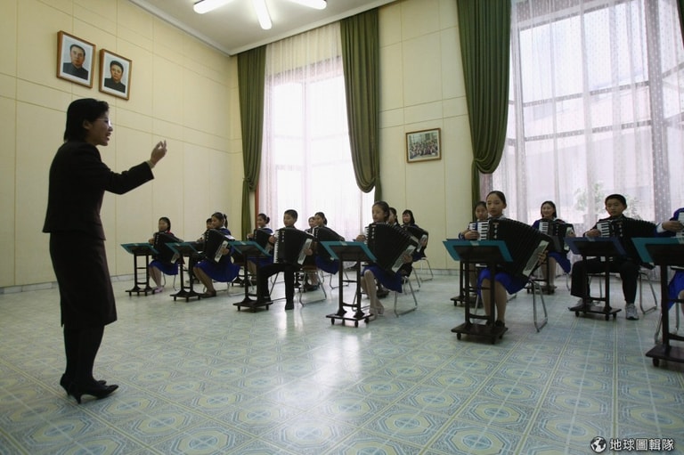 「萬景臺學生殿堂」(Mangyongdae Schoolchildren's Palace)的學生們正在輪番表演中。這間學校在1989年就有了,有點類似台灣常說的「課輔班」,這邊的學生會學到很多課外活動、技能知識。圖片來源:Alexander Hassenstein/Getty Images