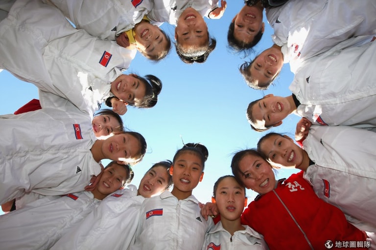 北韓體操代表隊的選手擺出Pose打招呼!圖片來源:Alexander Hassenstein/Getty Images