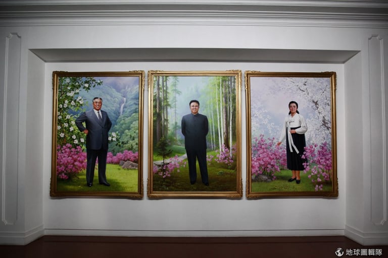 處處都是強調建國者、領導者偉大的裝飾物,最左邊的是北韓建立者金日成、中間是金正日,兩位是現任領導者金正恩的祖父和父親。圖片來源:Feng Li/Getty Images