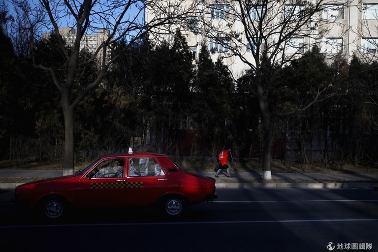 北韓當地的計程車,是大紅色的模樣!圖片來源:Feng Li/Getty Images