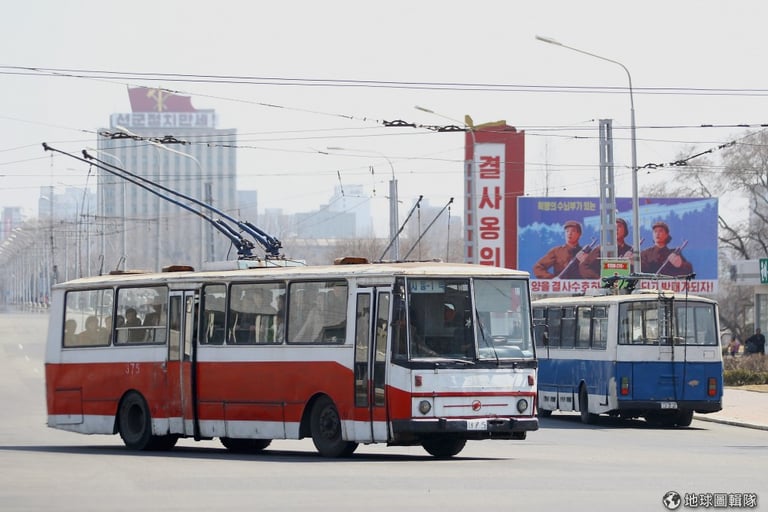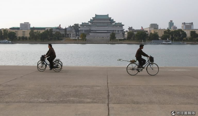 平壤市區內的早晨,三三兩兩的民眾騎著腳踏車出門去。圖片來源:Feng Li/Getty Images