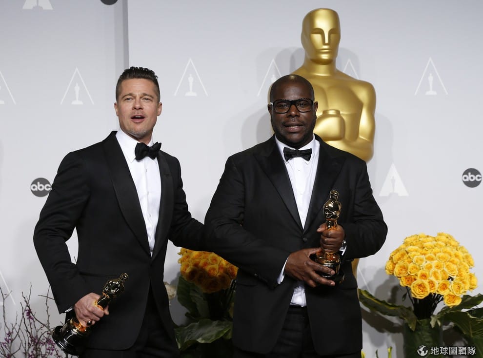 知名演員布萊德彼特(Brad Pitt,左)是《自由之心》演員兼製作人,與導演史蒂夫麥奎因(右)在第86屆奧斯卡頒獎典禮獲獎合照。史蒂夫麥奎因在2014年成為第一位贏得奧斯卡金像獎的非裔導演。
