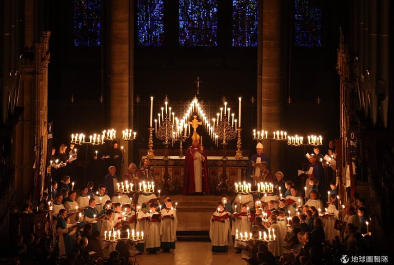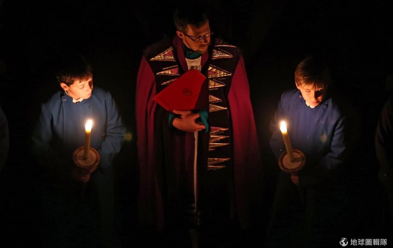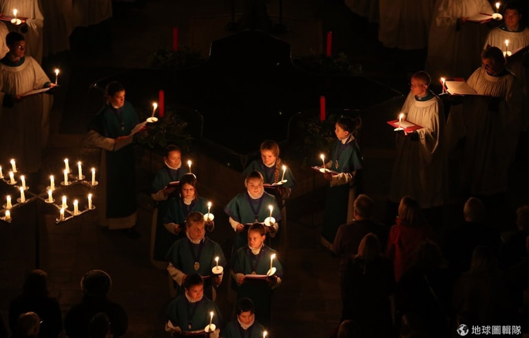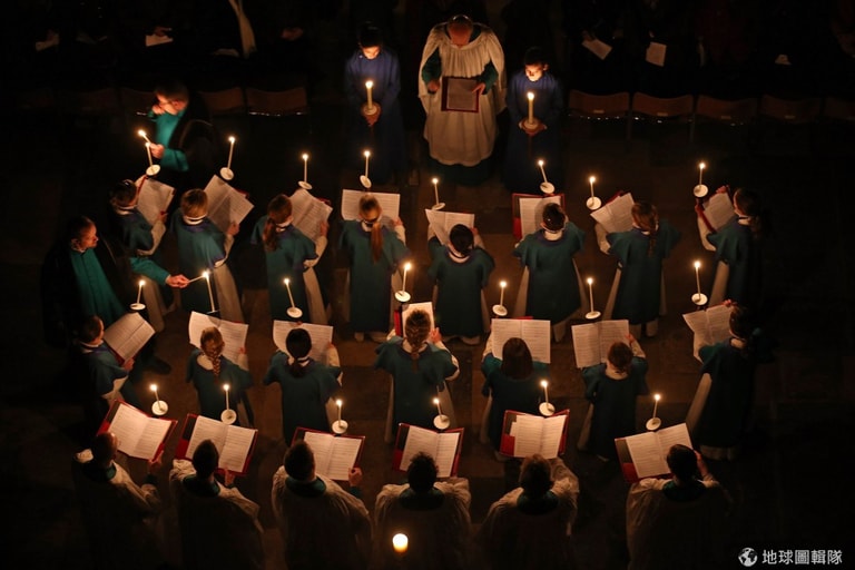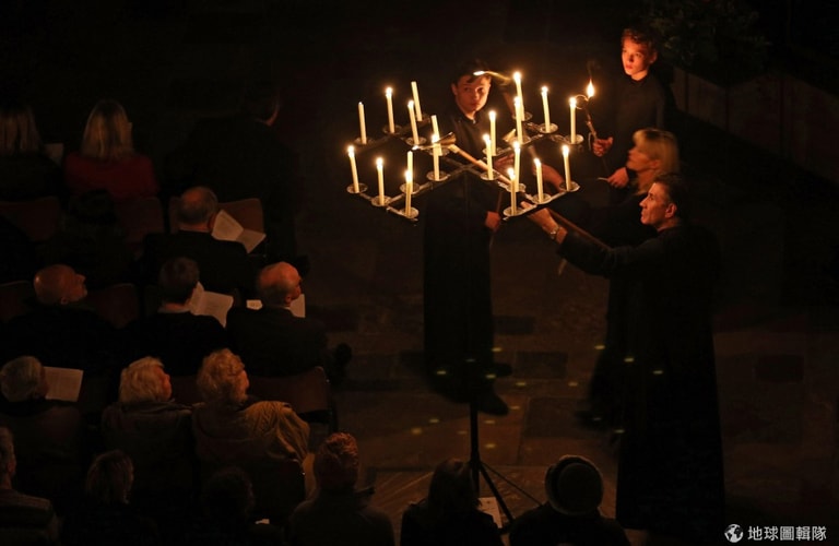 點點燭光亮起的時候,拿著燭火的合唱團也會開始在教堂內行走,傳遞光芒。圖片來源:Matt Cardy/Getty Images