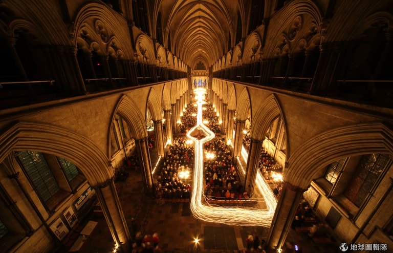 攝影師特別的捕捉了合唱團行走的路線,讓燭光呈現出華美的景象。圖片來源:Matt Cardy/Getty Images