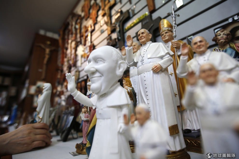 路透社南韓天主教堂為了歡迎時隔25年的到訪的羅馬教宗,出了不少教宗紀念品。