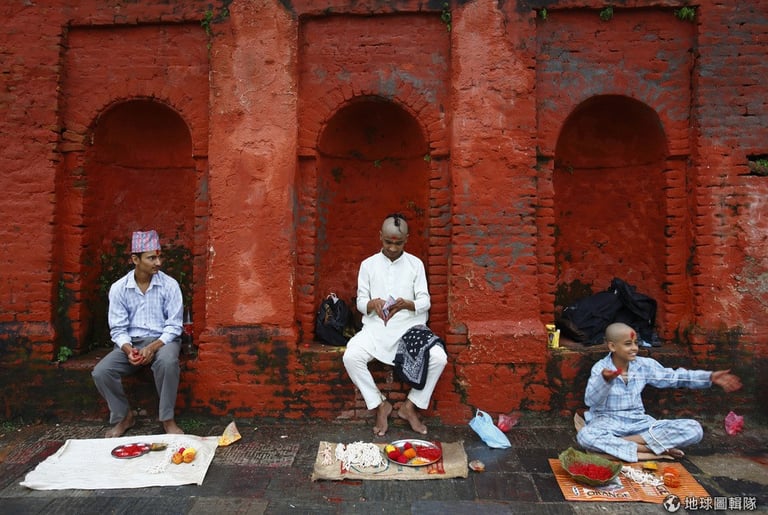 接受聖線儀式的男孩,他的舅舅會幫他剃髮象徵淨化,接著他所有的頭髮會被好好蒐集起來再統一丟掉,避免被有心人用來傷害他,當男孩完成剃髮儀式後,他的媽媽、姨娘還有姊妹會幫男孩把身上的頭髮沖淨。不過對母親來說,男孩永遠是男孩,不是男人。
