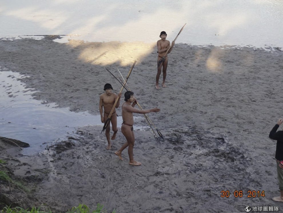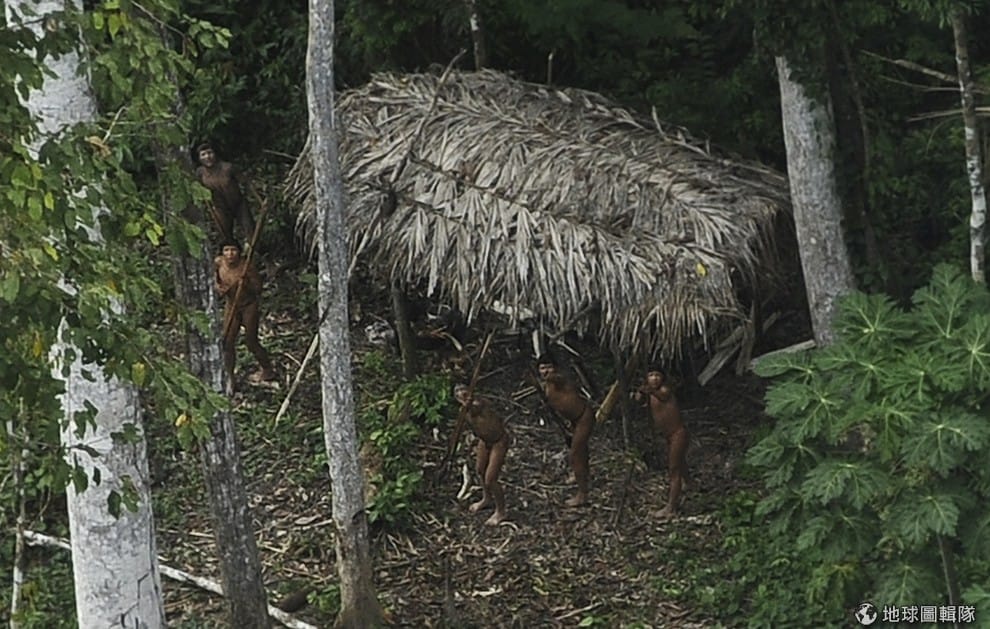 亞馬遜河流域的希納內河(Xinane River)旁,未曾被人類學家發現過的原住民看見天空飛過的飛機,忍不住抬頭舉手張望。