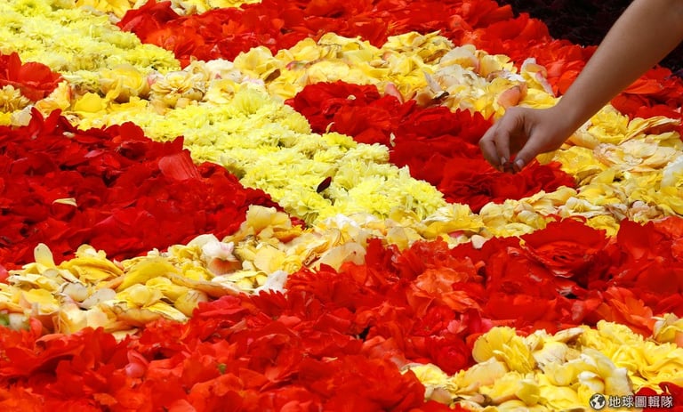 主辦單位動員了100名花毯志工一整天徒手布置這條面積約1,800平方公尺的花毯,從花毯的圖案設計可見土耳其地毯知名的烏沙克(Usak)地毯樣式。