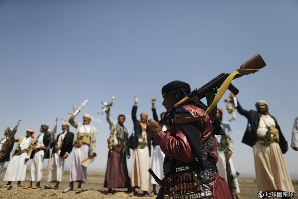 照片中是葉門當地的武裝組織「胡西」(Houthi group),他們正在當地一場反政府的聚會上。葉門正轉型朝向一個聯邦系統為主的國家,這使得掌控葉門北邊大部分區域的胡西組織想趁勢釐清自身在葉門的勢力。