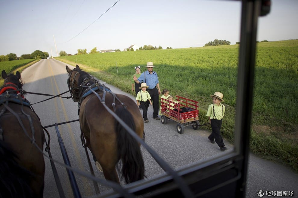 照片中是美國賓州當地的阿米希(Amish)一家人,他們正往朋友的家中聚會走去。這些擁有儉樸生活的阿米希人,他們的生活景象每年會替賓州當地帶來19億美元的觀光財,賓州是美國境內最大的阿米希人聚集處,大約有3.1萬人居住此區。
