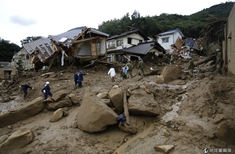 BBC、《日本時報》20日綜合報導,日本廣島今天凌晨暴雨成災,每小時降下超過100毫米的暴雨造成奪命土石流及洪水,席捲廣島市郊區一處靠山的住宅區,至少20人慘遭土石洪流活埋或被沖走。