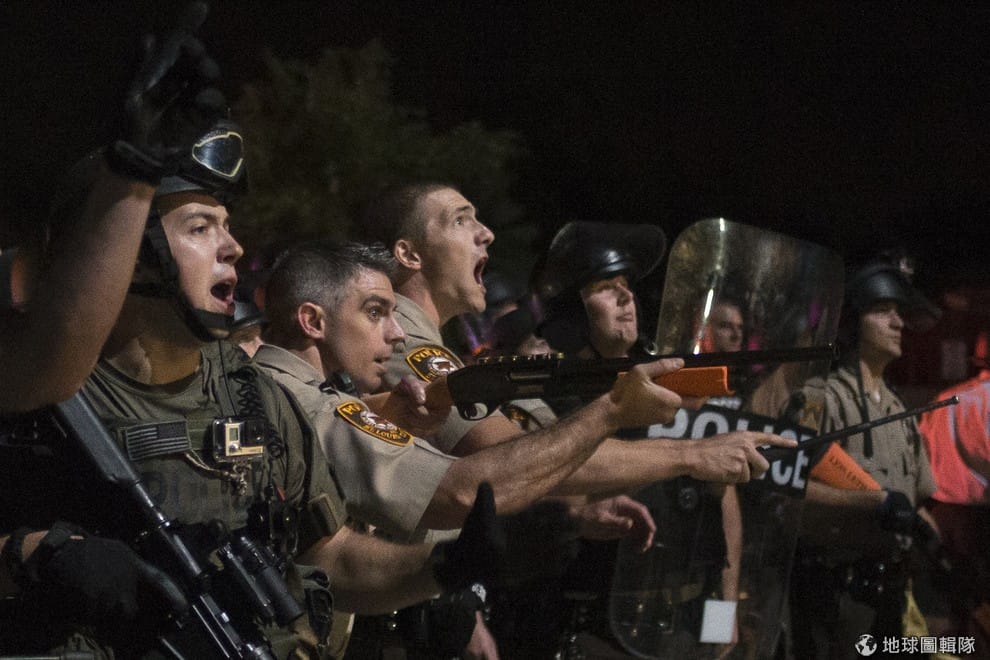 一名示威者眼睛被刺激物擊中,一旁的人正幫他倒牛奶清洗減低不適。美國中部密蘇里州當地的佛格森市內,8月9日傳出黑人遭白人警察槍殺的消息,在當地引起超過10天的大規模暴力抗議。