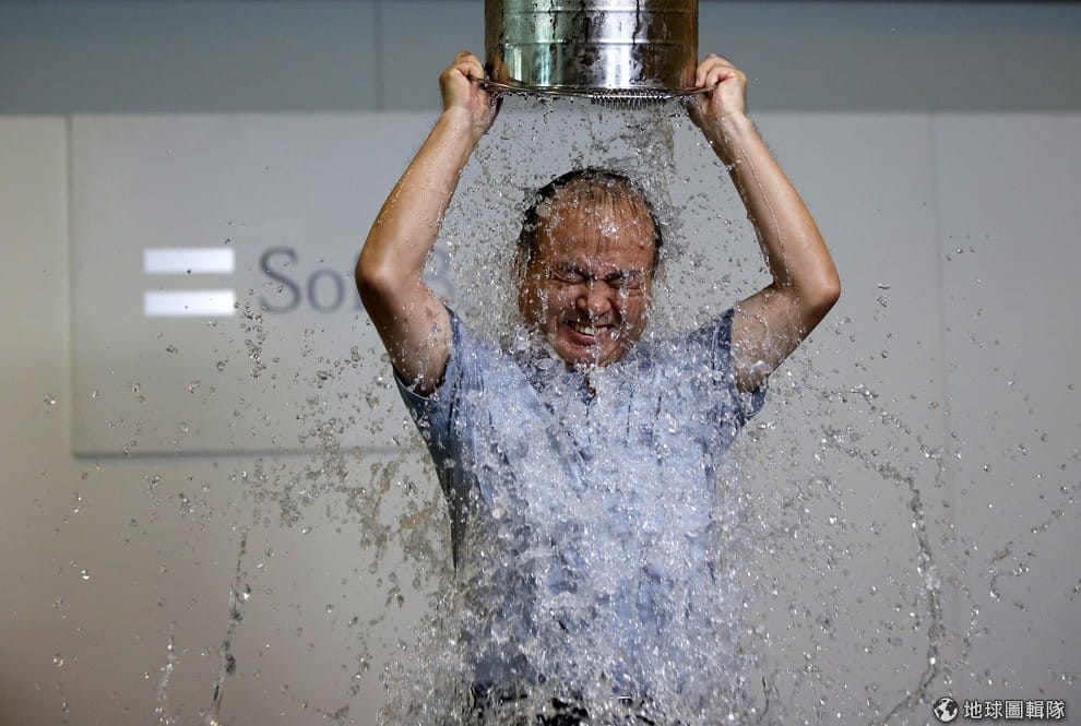 照片中是日本軟銀(SoftBank Corp.)的創辦人兼執行長孫正義,他響應關懷漸凍人活動,也在20號這天在總公司前接受冰水挑戰。