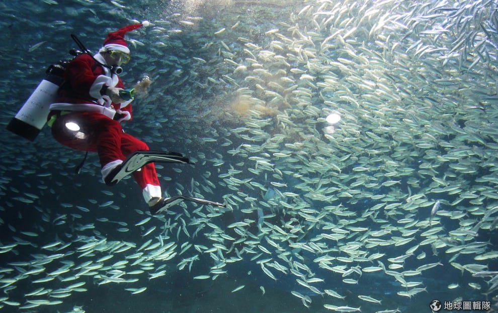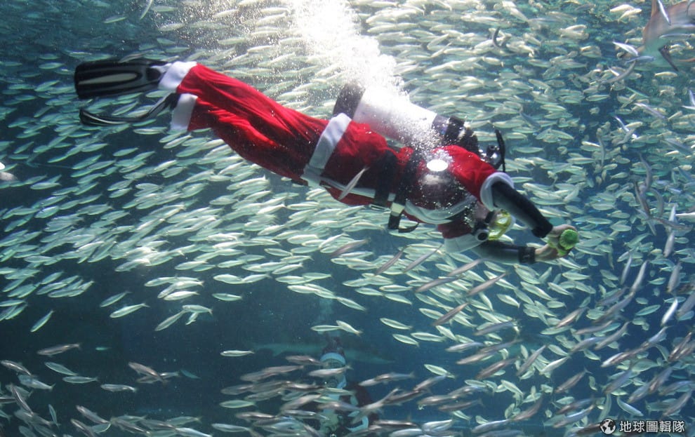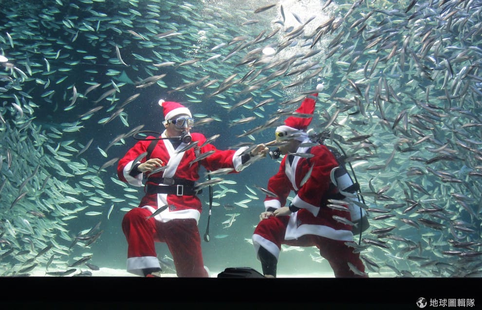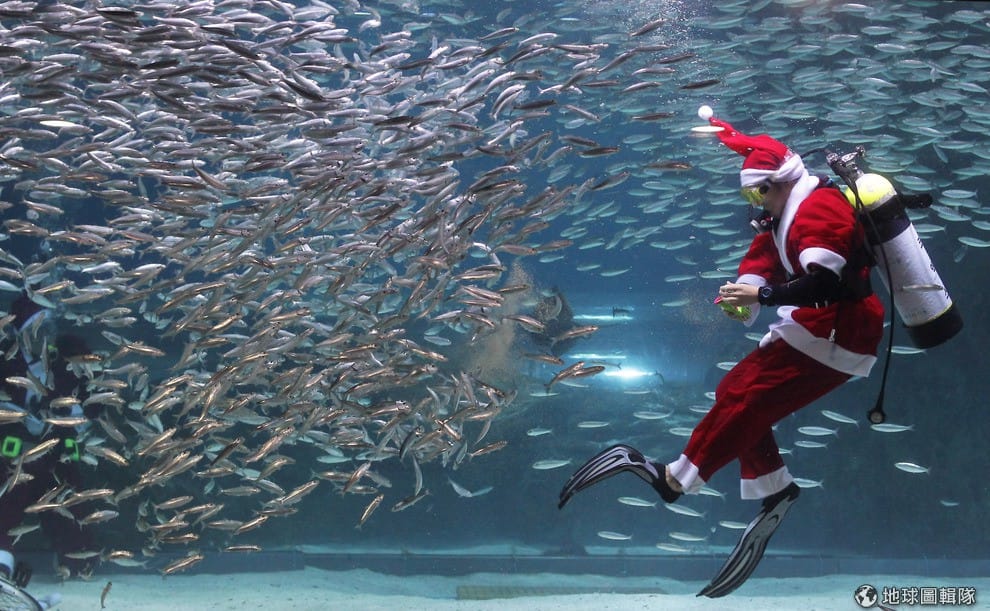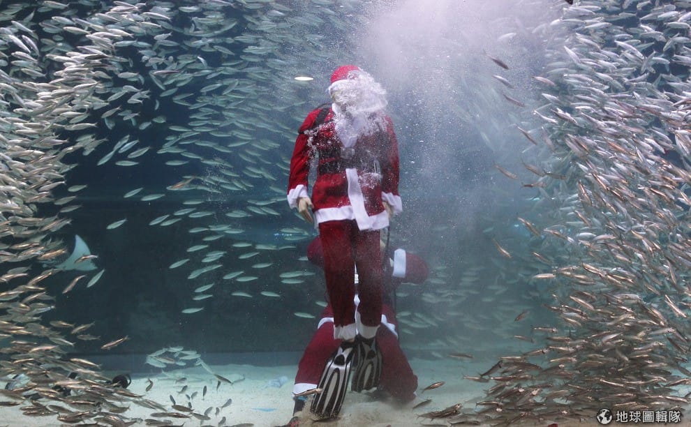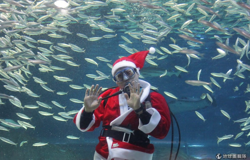 另方面,南韓當地的水族館,則直接把聖誕老公公請進水族箱,表演起聖誕老人餵魚秀。膩點燈秀的話,來看看不一樣的聖誕老人們吧!