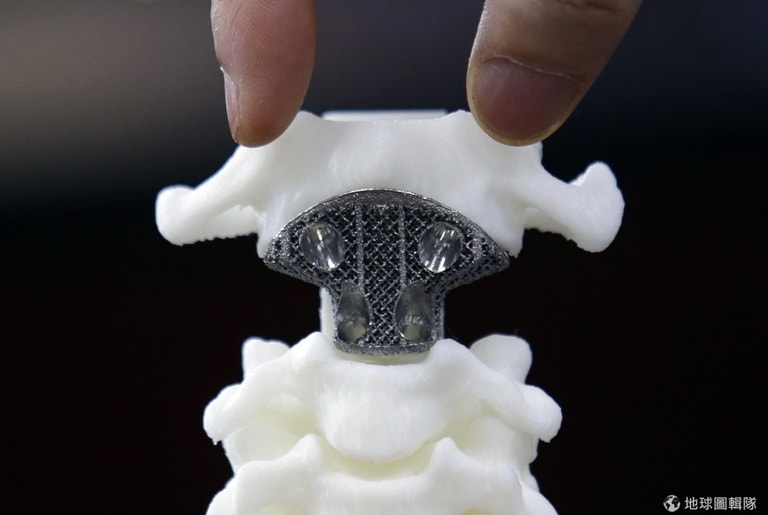 但因為傳統會用鈦合金網籠代替原來椎體的位置,但容易出現椎體塌陷,椎間高度難以維持等情況,給患者帶來極大痛苦。醫療團隊最後決定用鈦合金粉末3D列印技術,製造出空間結構複雜、符合解剖形態的孔隙金屬結構,使骨細胞長入空隙金屬內,達到融合的效果。同時,由於人工椎體獨特的設計結構,不再使用鈦板輔助固定。