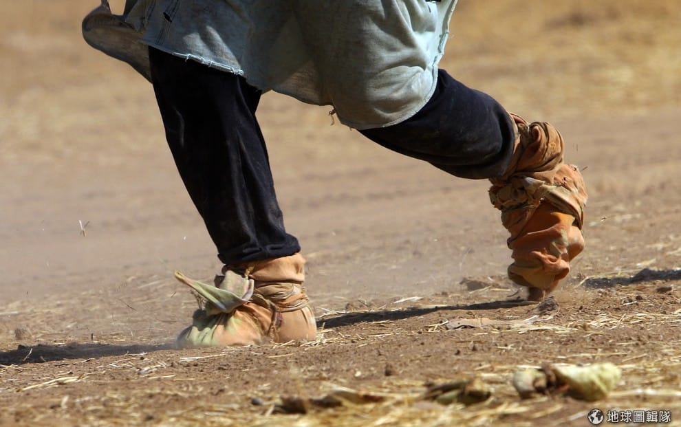 逃命的亞茲迪人用布包住腳躲避旱地上的高溫