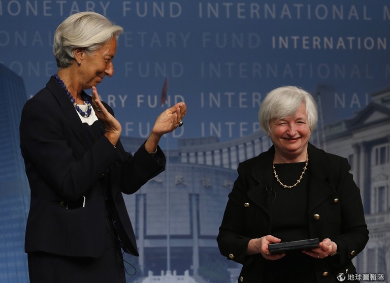 兩位叱吒金融圈的重量級女性,IMF總裁拉加德以及美國聯邦準備理事會(Fed)主席葉倫(右,Janet Yellen),葉倫從擔任主席8年的柏南奇(Ben Bernanke)手中接棒後,將會管理這相當於中央銀行的機構至2018年2月3日結束。