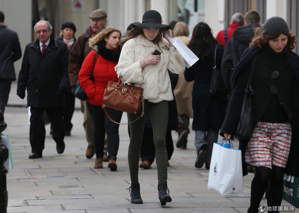 另一名剛從折扣商店走出的女子,正大包小包的走去搭車。圖片來源:Oli Scarff/Getty Images