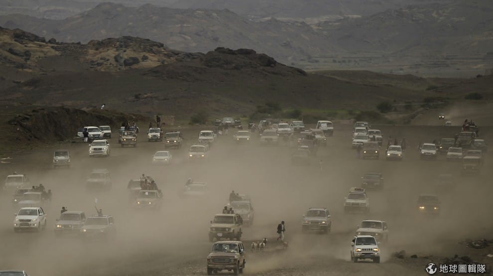 照片中的車輛載著反政府武裝組織胡西的人們,4號這天,葉門政府答應恢復油價補貼方案,希望能平息示威者怒火。