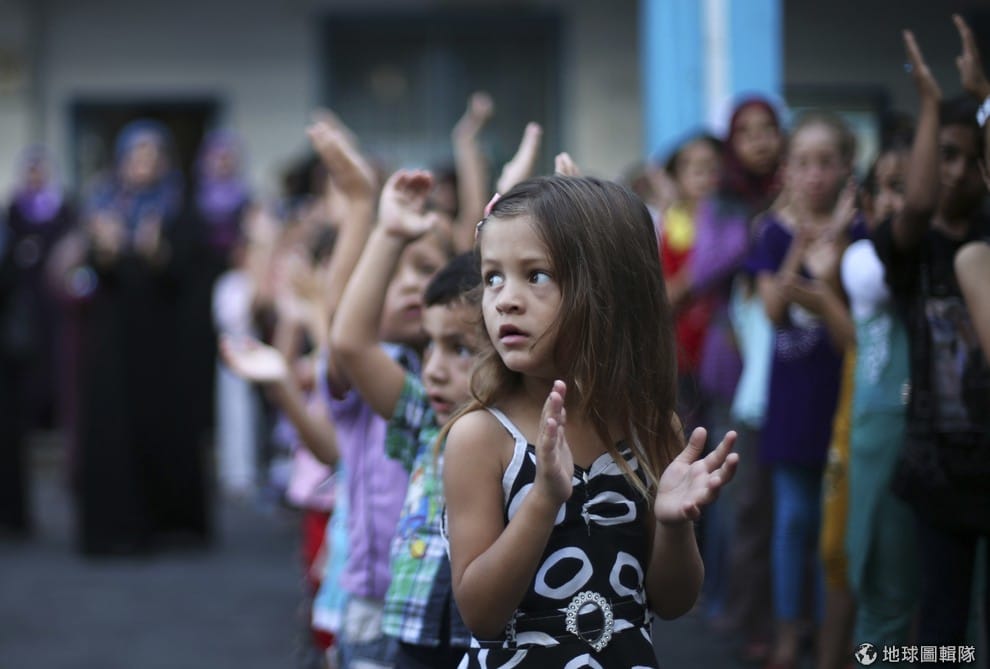 路透社日前8月24日時,聯合國想喚起世界對加薩走廊孩童們無法正常上課的關注,他們叫孩子們排成人龍,顯示出大量的學童因為戰火失去家園,也失去上學機會