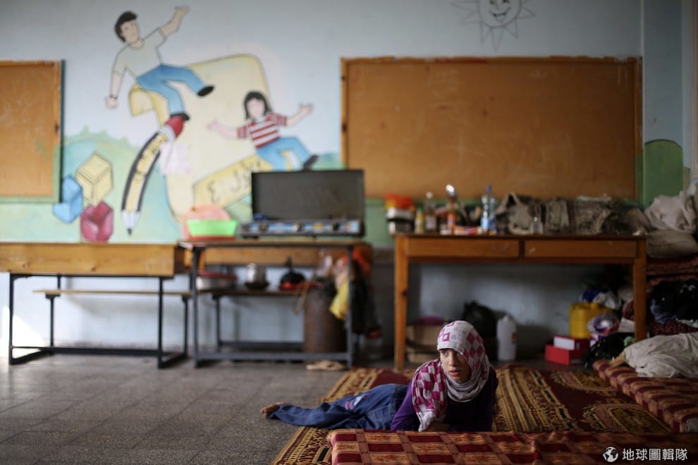 路透社一名身障女孩跟著家人逃到聯合國設立的校舍中