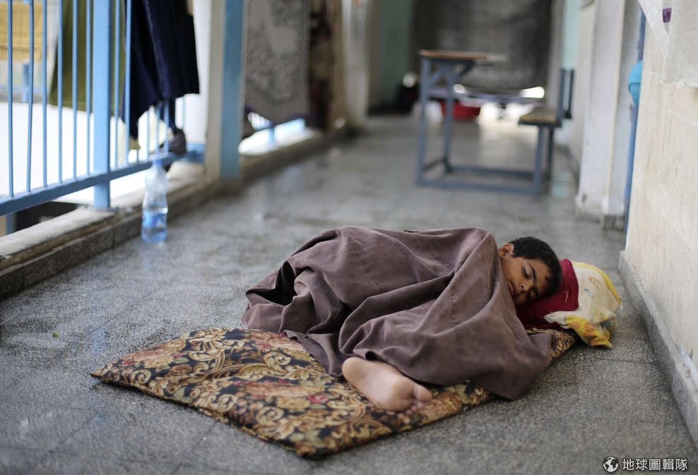 路透社失去家園的孩子正在聯合國設立的校舍中休息