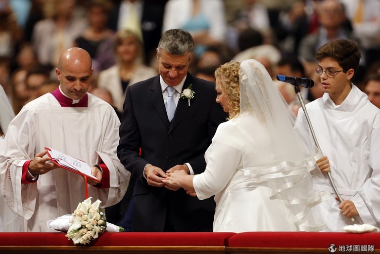這次罕見的證婚儀式,就選在即將來臨的天主教大會前發生,10月時,來自世界各地的主教們會齊聚到梵諦岡,討論有關婚姻、離婚和節育的議題,今年其中一項議題就是與離婚相關,教宗將會和主教們討論現行禁止離婚又再婚人士領聖餐的儀式。