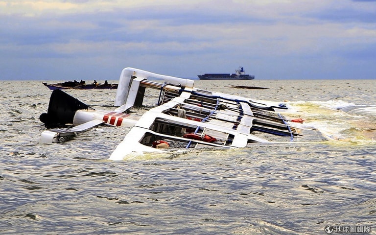 漁船開過因為強風大雨翻倒的「超級快艇7號」(Super Shuttle Ferry 7)旁,根據報導,颱風海鷗(Kalmaegi)在菲律賓造成洪水和土石流,週末期間更導致一艘擱淺渡輪沉沒,釀3死。颱風行進速度快速,15號時開始從菲律賓北邊離開,接著往西北方中國大陸南部前進。